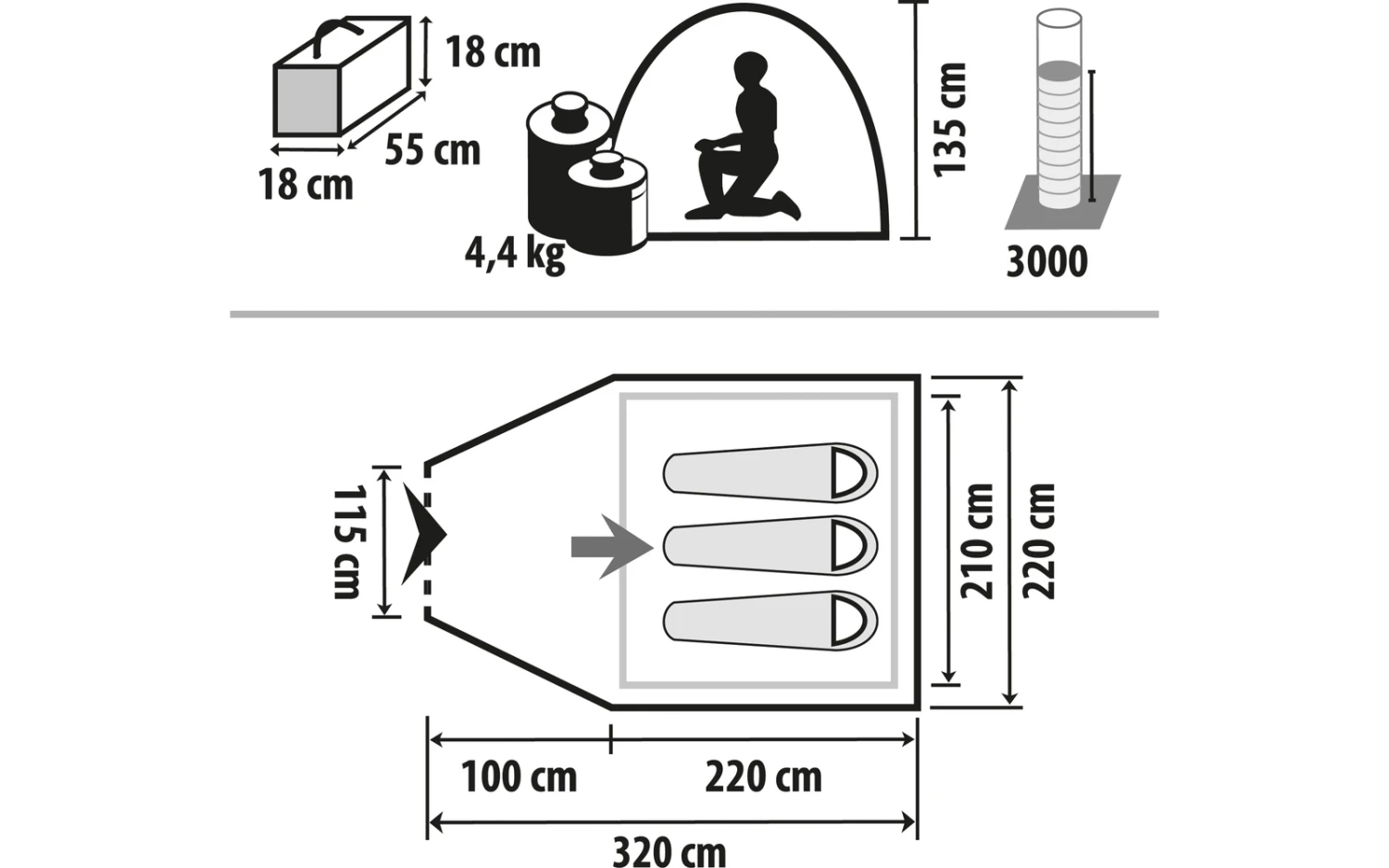 | Anzahl Personen | 3 Personen Zelt |