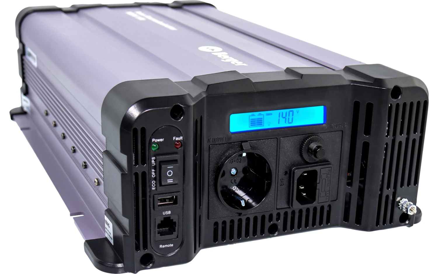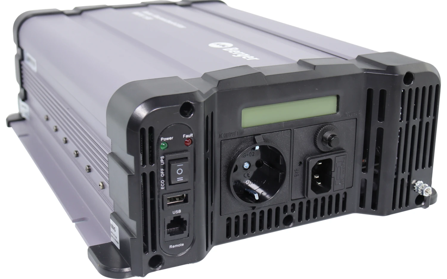 Die Besonderheit ist eine eingebaute Netzvorrangschaltung. Sobald Landstrom anliegt, entnimmt der Wechselrichter keine Energie mehr aus der Batterie, wird der Landstrom unterbrochen, wird automatisch auf wieder Batteriebetrieb umgeschaltet. Im eingebauten LCD-Display ist der Batteriestatus, Spannung und abgegebene Leistung ablesbar, eine kabellose Fernbedienung ist im Lieferumfang. Auch als 2000W Version verfügbar.