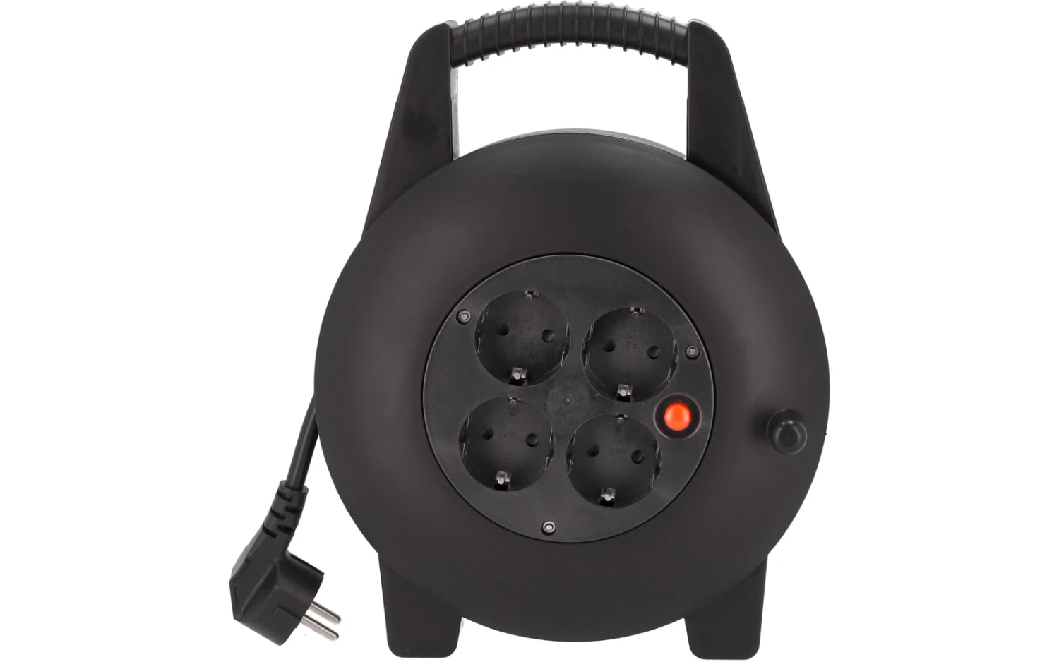 Die Kabeltrommel ist leicht und kompakt gebaut, mit einem Gehäuse, das sich gut transportieren lässt. Sie verfügt über ein langes Anschlusskabel und vier Schutzkontakt-Steckdosen mit Sicherheitsverschluss, die für eine verlässliche Stromversorgung sorgen. Ideal für den Innenbereich geeignet.