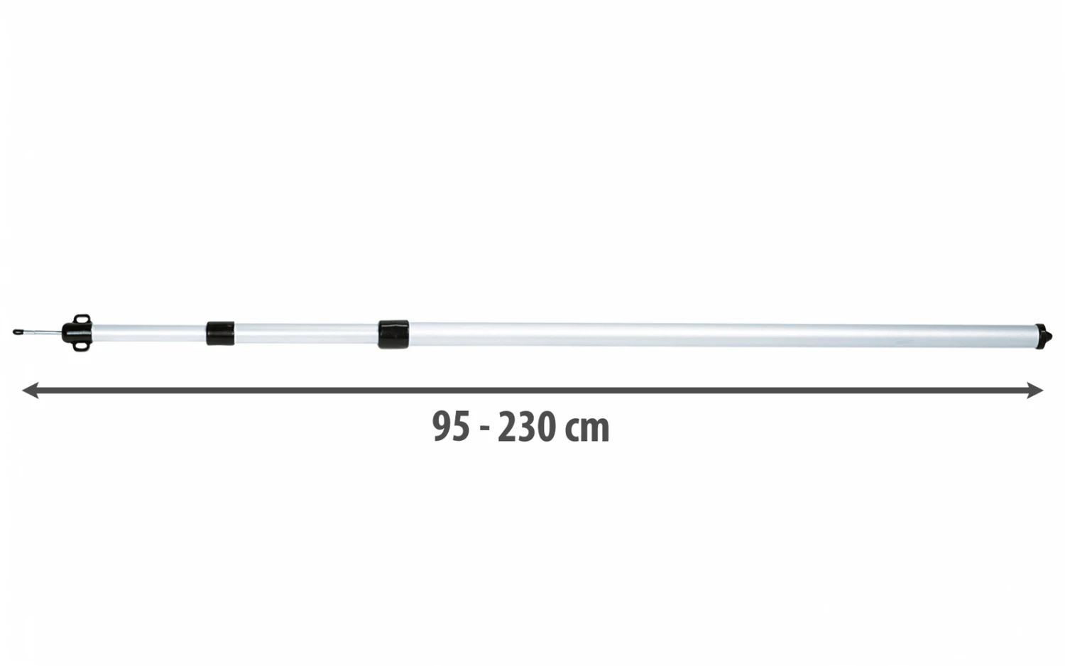 Sie ist teleskopierbar und kann stufenlos von 95 cm bis 230 cm eingestellt werden. Dadurch kannst du die Höhe des Sonnensegels an den Sonnestand anpassen und immer angenehm im Schatten sitzen. Die Stange eignet sich perfekt, um auf verschiedene Stellplätze zu reagieren und dein Sonnensegel optimal zu positionieren.